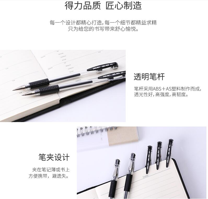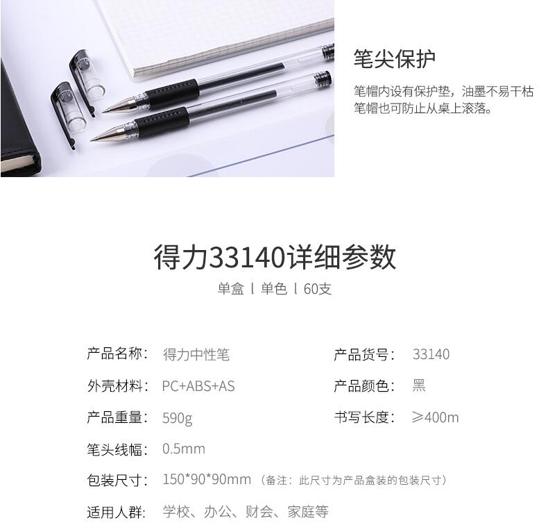 得力文具33140中性筆學(xué)生考試量販?zhǔn)胶诠P水筆碳素筆0.5mm辦公用品包郵書(shū)寫(xiě)工具60支裝